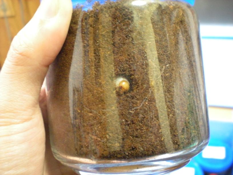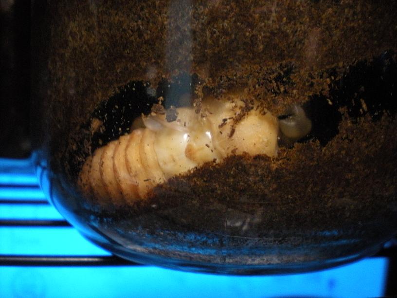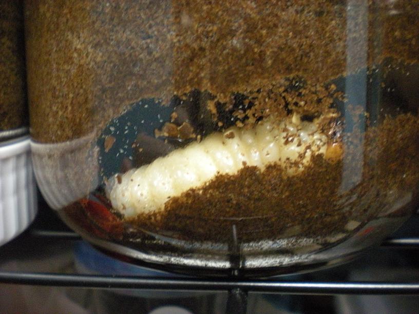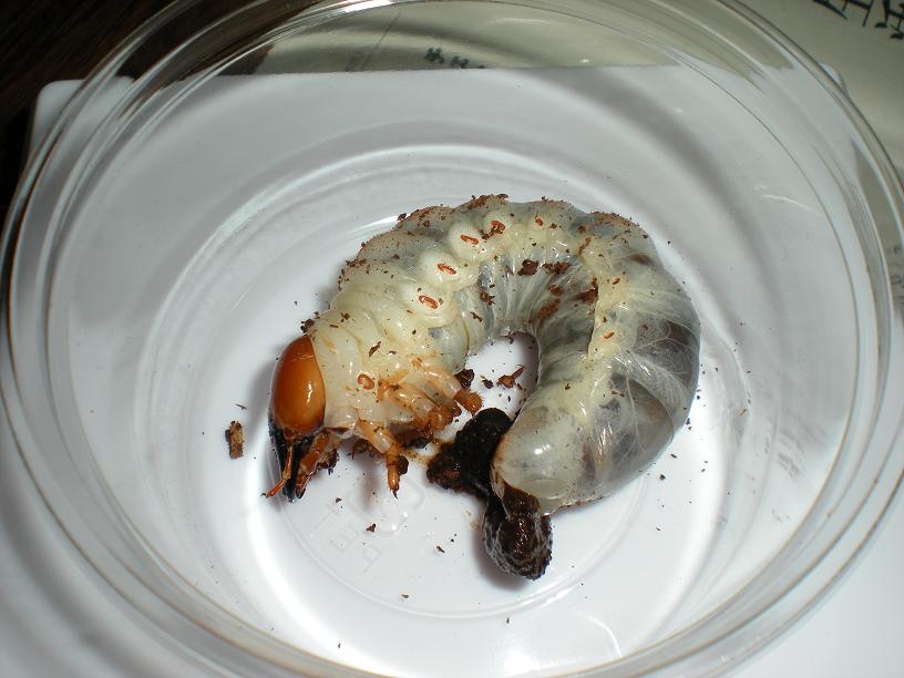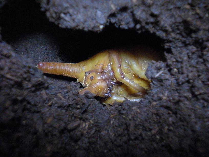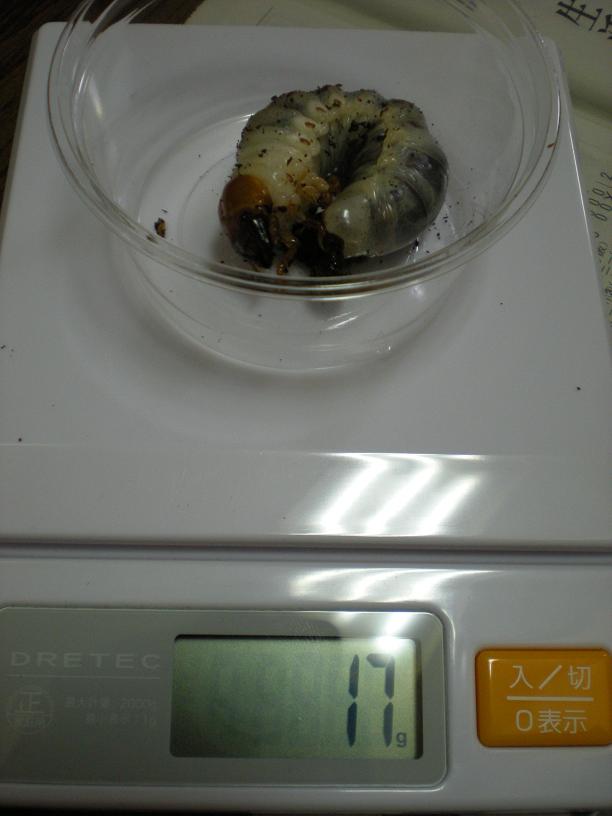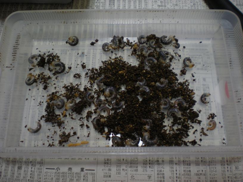 いただいた幼虫6頭中4頭は無事に羽化した訳ですが、残り2頭を掘り出したところ、溶けてしまっていました。