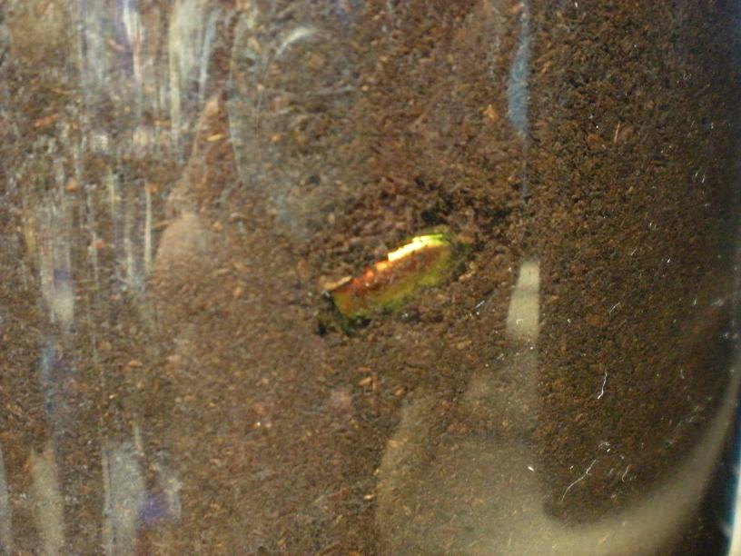 チョット前に気付いていたのですが、何か蛹自体が赤っぽく見えたので、気になって露天掘り。
