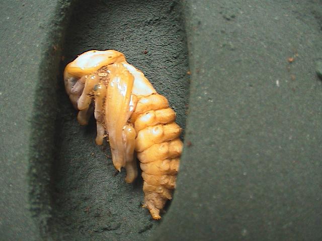 問題なのはこの個体、チョイと見づらいですが蛹室を作ってしまっていることです。