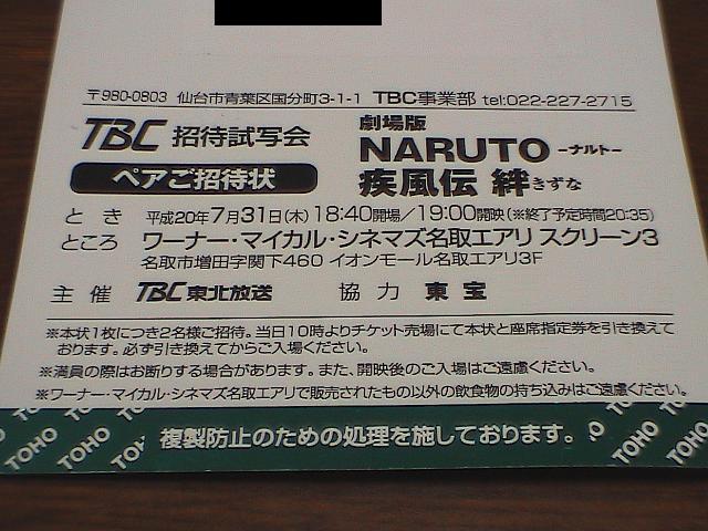 思い返すに、先々週は「ポケモン」を家族で、先週は私以外が子供会のイベントで「ポニョ」、今回は私と長男で「NARUTO」・・・・・・